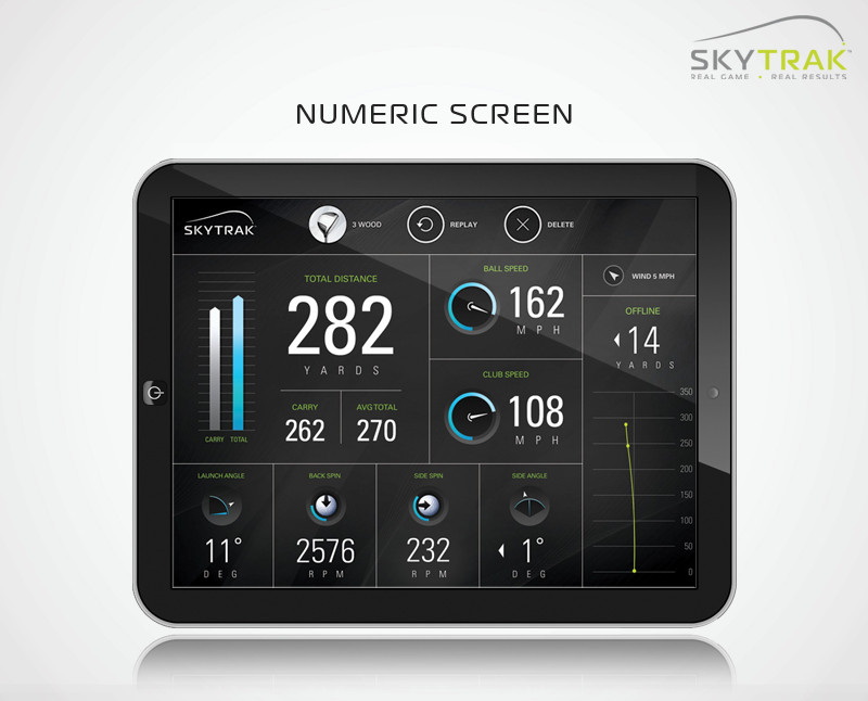 - Club path, face angle at impact, displays 3D ball trajectory, smash factor, ball and club head speed, etc.