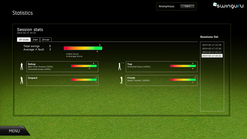 - The combination of 2D & 3D visualization features combined to Swinguru 3D data make it possible to see and measure key elements of the swing at any moment.